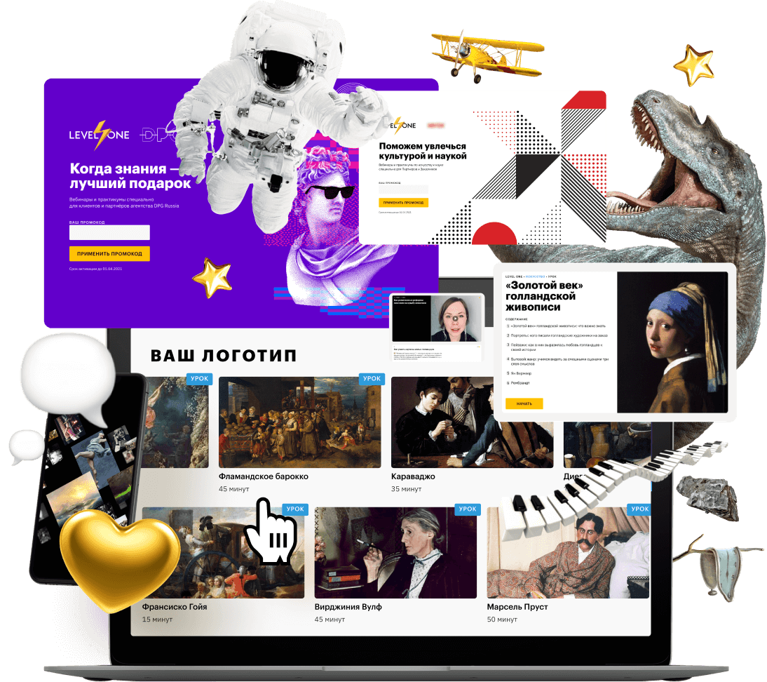 Подарите коллегам или партнерам сертификат Level One для изучения всего, чем они интересуются вне работы: культуры, моды, кино, литературы и многого другого.